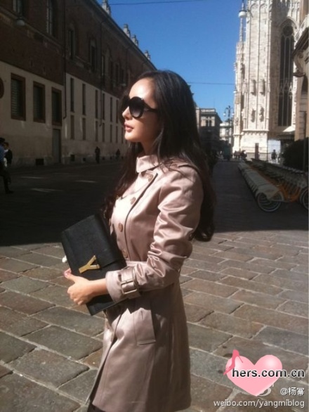 楊冪那著基本黑色配上Burberry風衣就營造歐風優雅(嗯~側面看胸部好大)