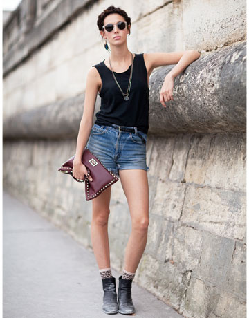 童顏美女宋慧喬也拿了流蘇包,襯衫和短褲配上柔美的流蘇包,完全中和一身帥氣的打扮。